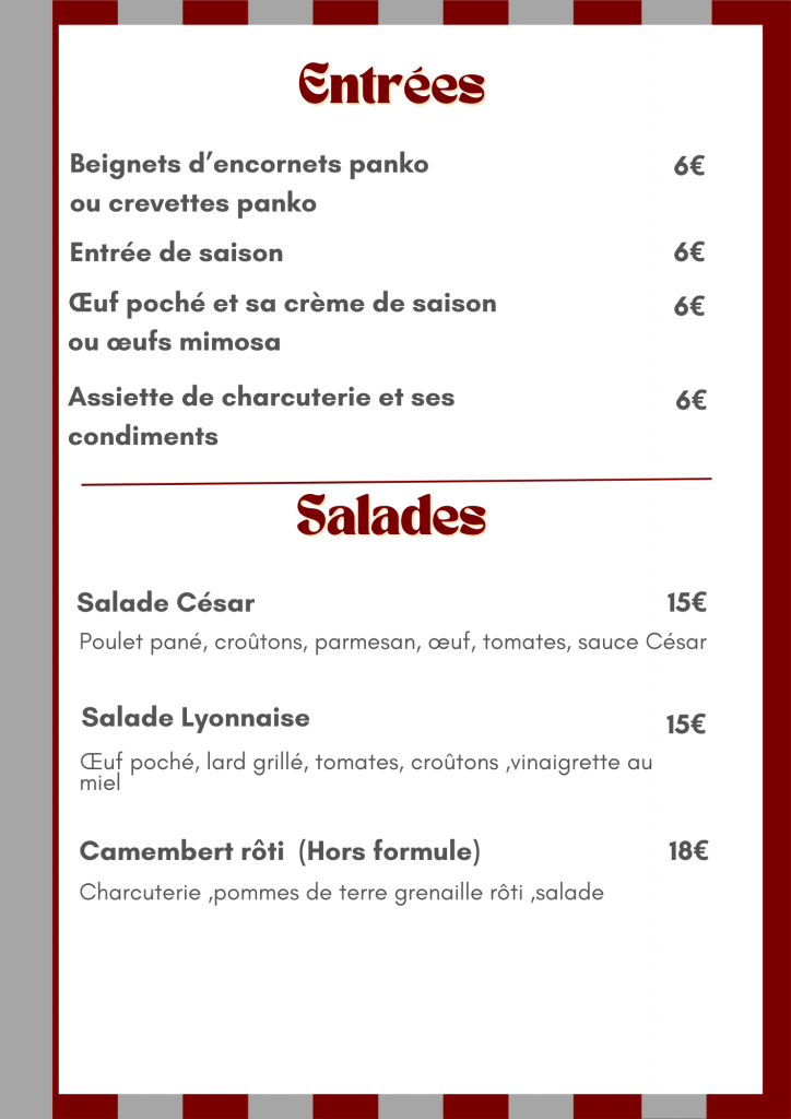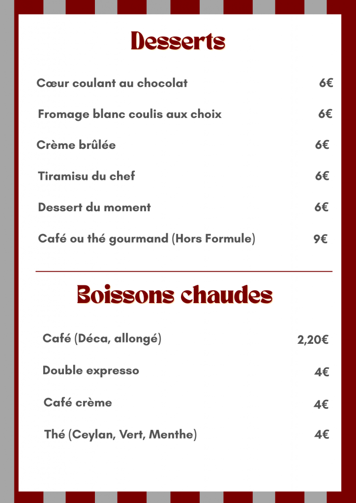 Une cuisine moderne et raffinée, juste pour vous Notre carte, de l’entrée au dessert, est renouvelée chaque jour avec de nouvelles suggestions et de nouveaux plats du jour pour vous assurer de ne jamais sombrer dans la monotonie du goût…